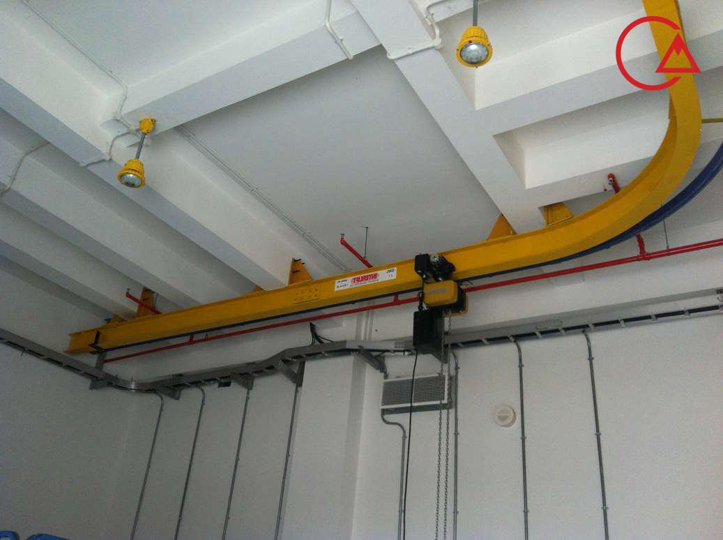 - جرثقیل های مونوریل که روی یک مسیر منحنی در حال اجرا هستند.
